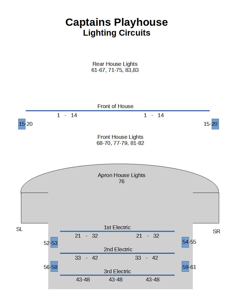 The circuit map helps in the planning and testing of lights. Each circuit corresponds 1:1 with a dimmer.